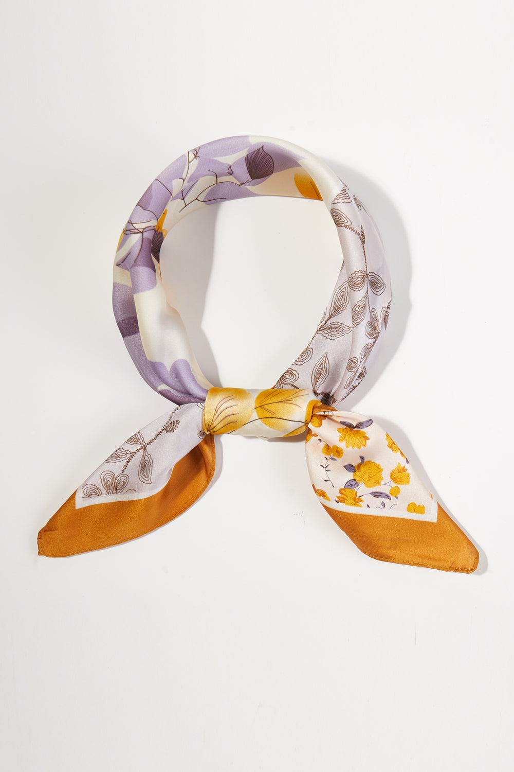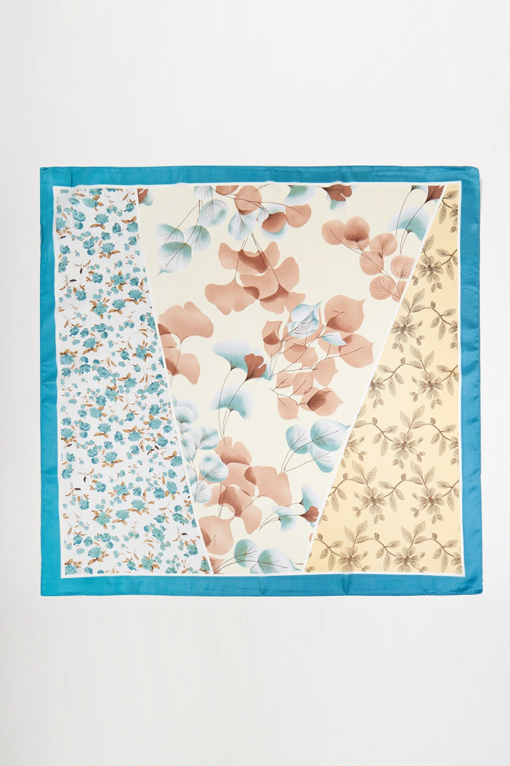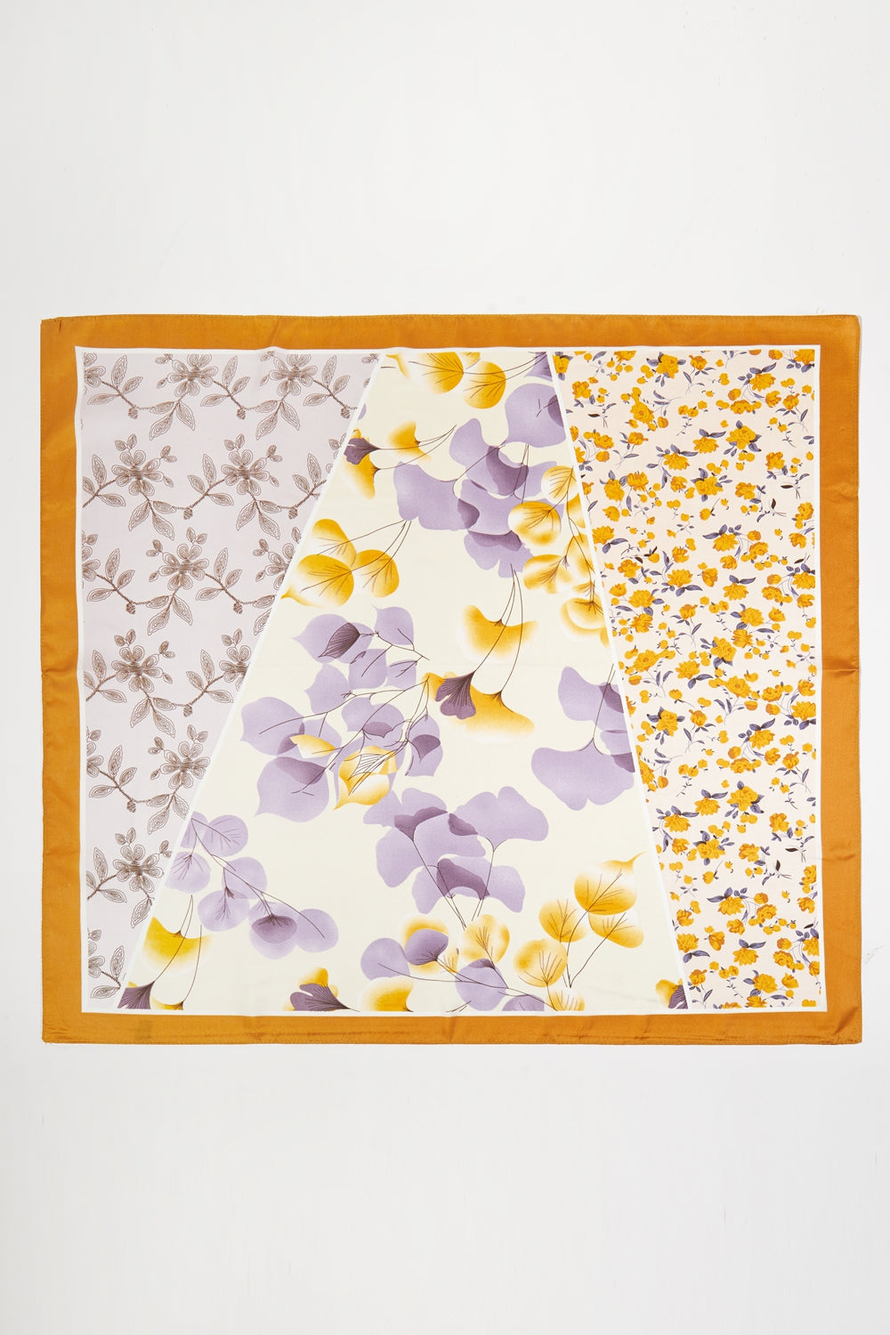 Elevate your style with this unique floral scarf, a versatile accessory that seamlessly blends classic elegance with a modern aesthetic. The design features a captivating combination of distinct floral patterns, creating a beautiful patchwork effect that makes it a true statement piece.