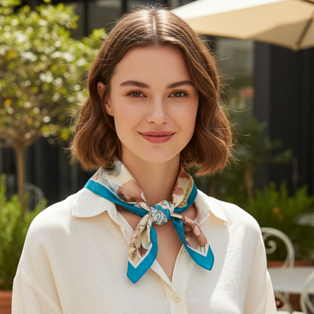 Crafted from a soft, high-quality fabric, this scarf offers a luxurious feel and a beautiful drape. Its square shape allows for multiple styling options—wear it as a classic neck scarf, a chic headband, or tied to your handbag to add a touch of sophistication to any ensemble.